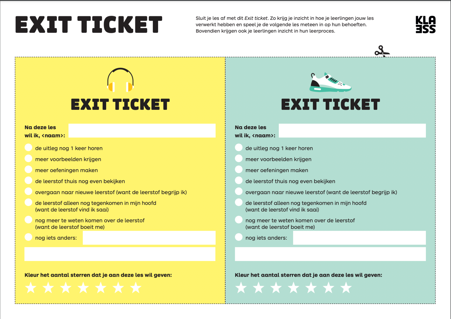 Wanneer je iets nieuw uittest in de klas, of je wilt zien of je les haar doel bereikt heeft, kan je dit met een exit ticket doen. Een exit ticket geeft je inzicht in hoe je leerlingen de les verwerken en speel je volgende keer meteen in op hun noden.